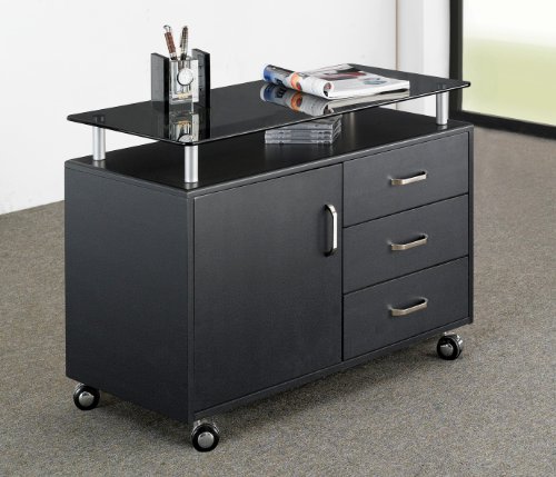 Techni Mobili Deluxe Rolling Glass Top File Cabinet Graphite